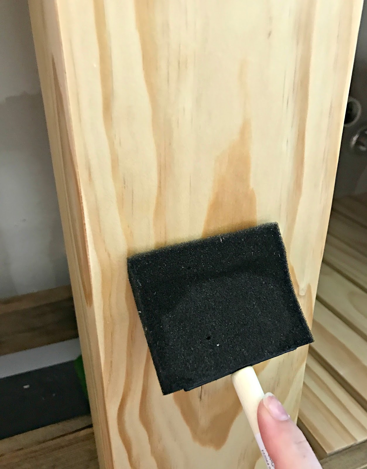 It helps to prepare the wood for staining — it’s such a quick process it takes no time at all. I use a foam brush to apply: