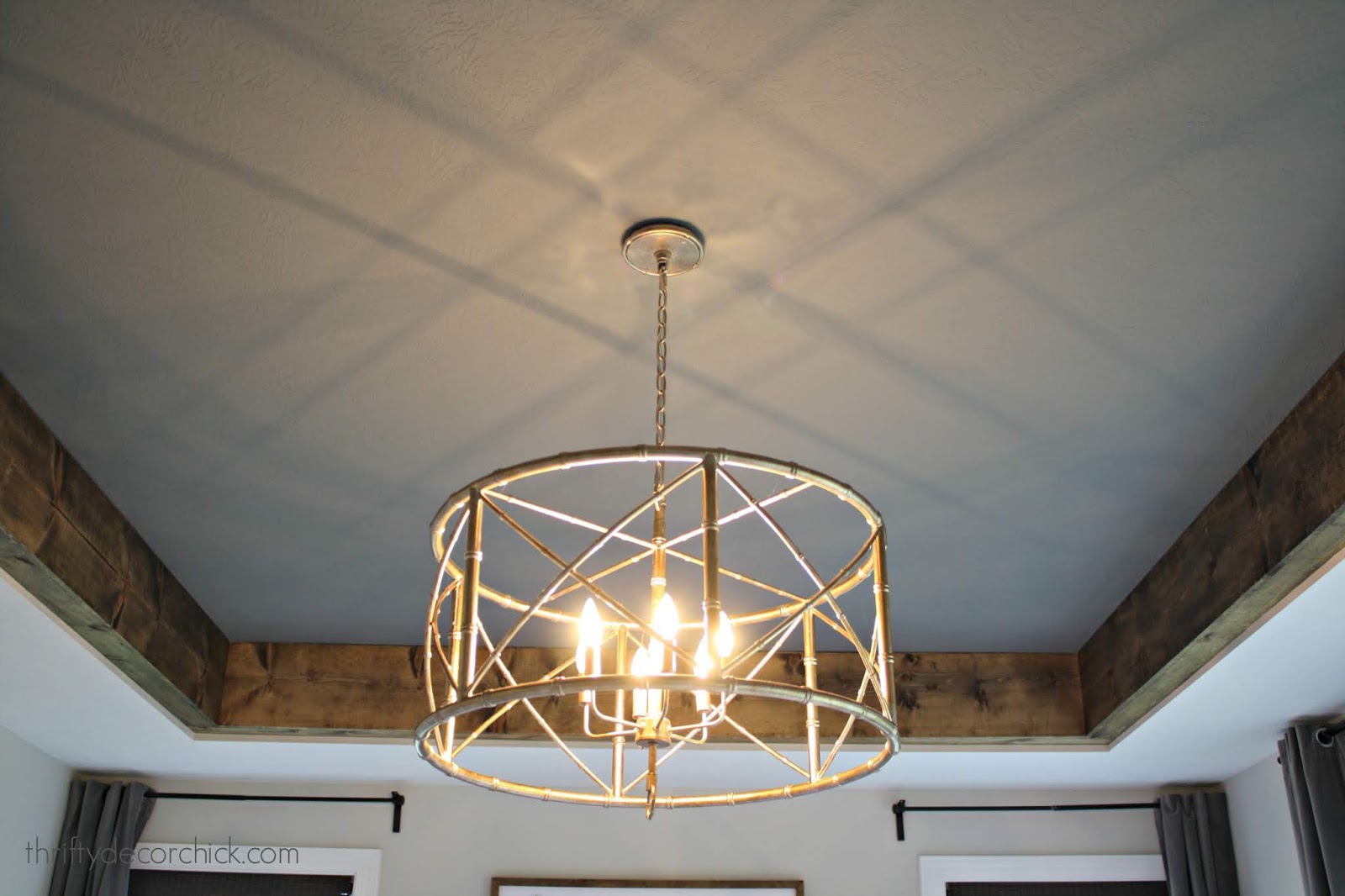I first saw my project in a model home but haven’t seen it anywhere since! This was a different take on the typical tray ceiling treatment and we LOVE how it turned out!